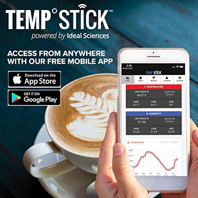 Temp Stick Wireless Remote WiFi Temperature & Humidity Sensor. No Subscription or Monthly Fees. 24/7 Monitoring, Alerts & History. Free iPhone/Android Apps, Made In America. Monitor Anywhere, Anytime!