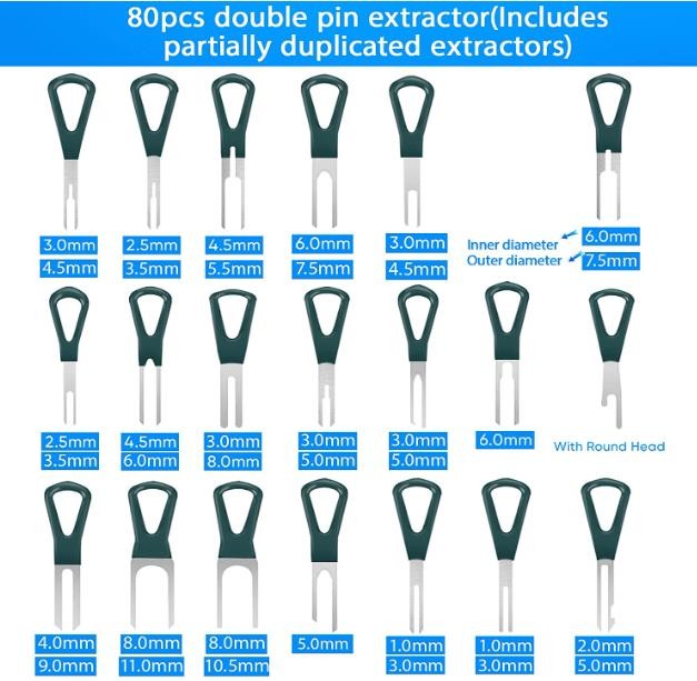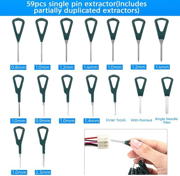 Kikerike Pin Extractor Release Tool Set is designed to take out auto wire terminals without damage, this pin removal tool has different sizes that fits most of the connector terminal removal.
