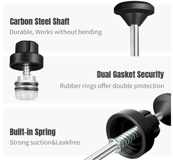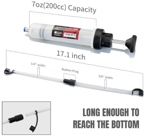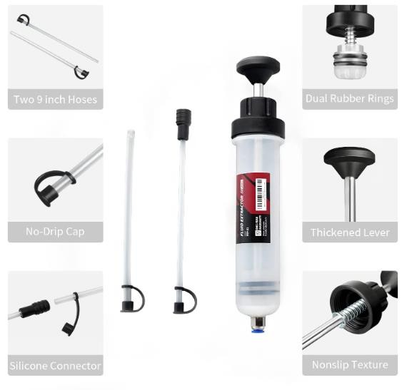 • LEAK FREE FLUID EXTRACTOR - The Locking button helps to use the tube safely. This hand pressure fluid extractor and injector features a dual rubber ring design that forms an airtight seal, the precision threading at the end of tube preventing any leakage.