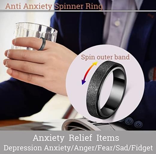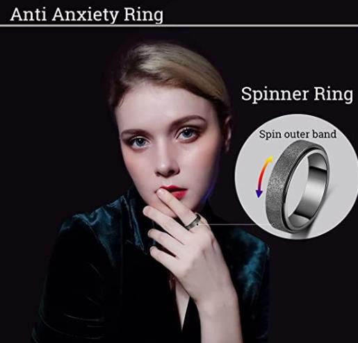 How to use this spinner anxiety toys fidget ring: usually wear on index and middle finger,and spin it by thumb. It's helpful for anxiety relief, It's great gift as fidget toys for adults with anxiety.