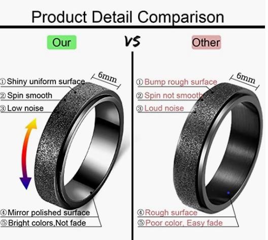Anxiety ring for women stress relief: this spinner ring spins Smoothly While manual turnning. Great fidget rings for anxiety for women kids, help her concentrate While not being distracted to others.used as anxiety relief items.If dirty please clean it with handsoap and clean Water. They are sturdy pretty anti anxiety ring.