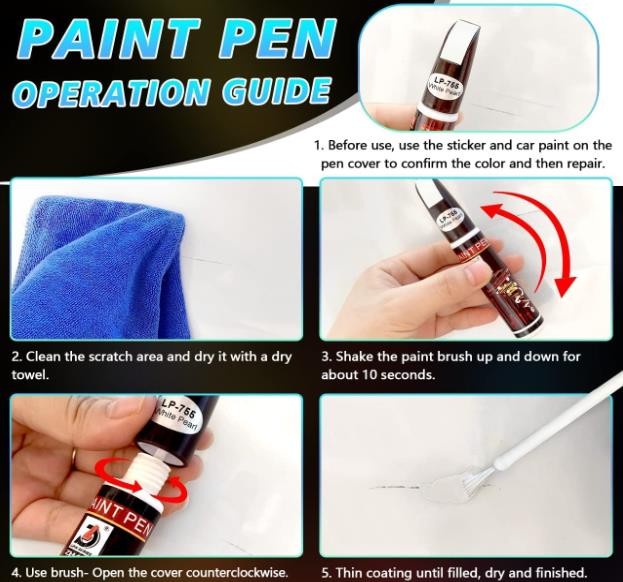 • 【Easy to dry】: it only take about 10 minutes (Normal temperature) to dry , when you finish the first layer , it will dry very fast , if the scratches are very deep , then you can paint the second layer and third layer until the scratch is fully filled . save you lots of time .note: please use it in sunny days.