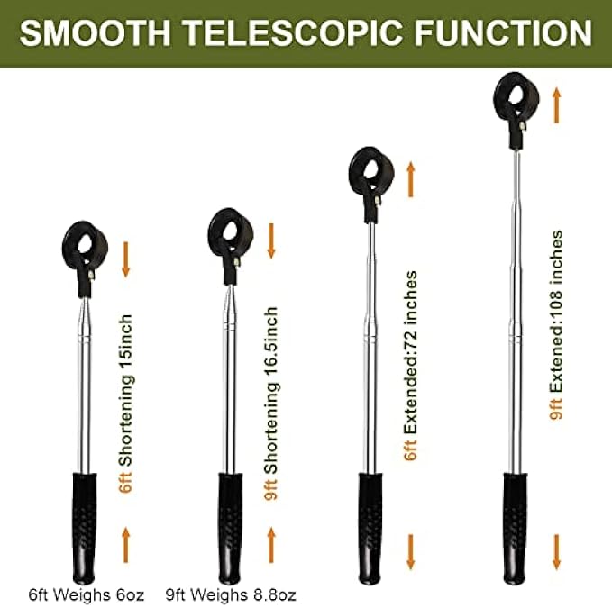 • 【Stainless Telescopic Golf Ball Retriever】 The retractable design allows you to pick up the ball without bending, which not only saves your energy and time, but also protects your waist. It can also help you easily retrieve your ball from ponds, mud, bushes and lake.