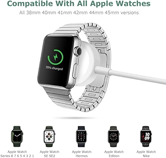 【Universal Compatibility】This watch charger is designed to ensure perfect suitable for all Series Watch SE2/SE/8/7/6/5/4/3/2/1, including the 38 mm 40 mm 41 mm 42 mm 44 mm 45 mm Version.