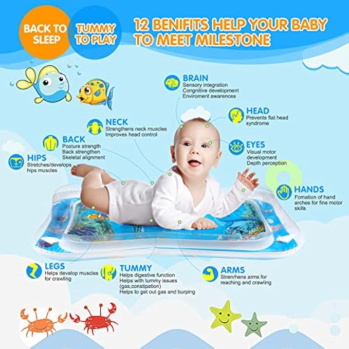 • Supreme Quality & Safety: Our baby water play mat are Made of Non Toxic & BPA-free PVC, each of tummy time mat has been passed rigorous water leakage and durability test, 100% leak proof, don't worry about your baby getting wet