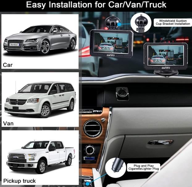 ► 【Easy To Installation】The back up camera systems wireless is easy to install. Once you connect the 4.3 inch display to the supply power in the cigarette lighter, or wire it to the ignition, pair the car camera to the taillight or other light and to the wireless antenna and you are good to go.