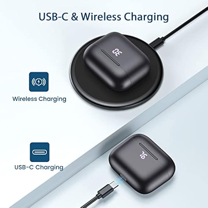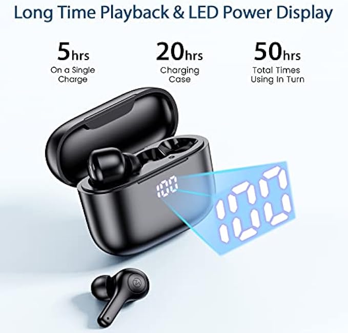1.Built-in premium quality mics & bluetooth 5.3. Each bluetooth earbud has built-in 2 microphones for clear phone calls that can pick up your voice from multiple directions, allowing the other side to hear you more clearly. Can be used for work, learning and commuting. Adopt the advanced Bluetooth 5.3 technology, which greatly improve the transmission speed and providing you with a low-latency and stable talking experience on phone conversation with others.